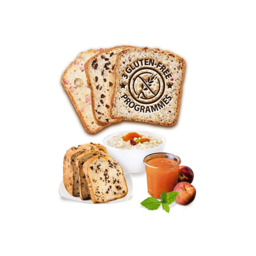 | Дополнительно: | Особенности: Отложенный старт до 15 часов Выбор цвета корочки Выбор размера хлеба 3 безглютеновые программы Программы приготовления: Пшеничный хлеб Ржаной хлеб Диетический хлеб Хлеб без клейковины Французский хлеб Быстрая выпечка Тесто для пельменей Тесто для пиццы Джем Цельнозерновой хлеб Сладкая выпечка Безглютеновый хлеб |